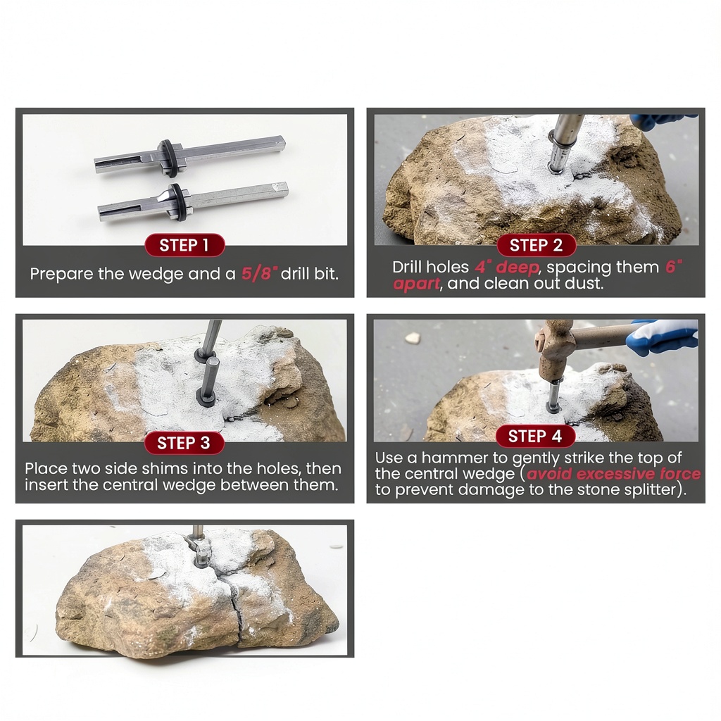 - Ideal for splitting stone, concrete, and granite with controlled, even pressure